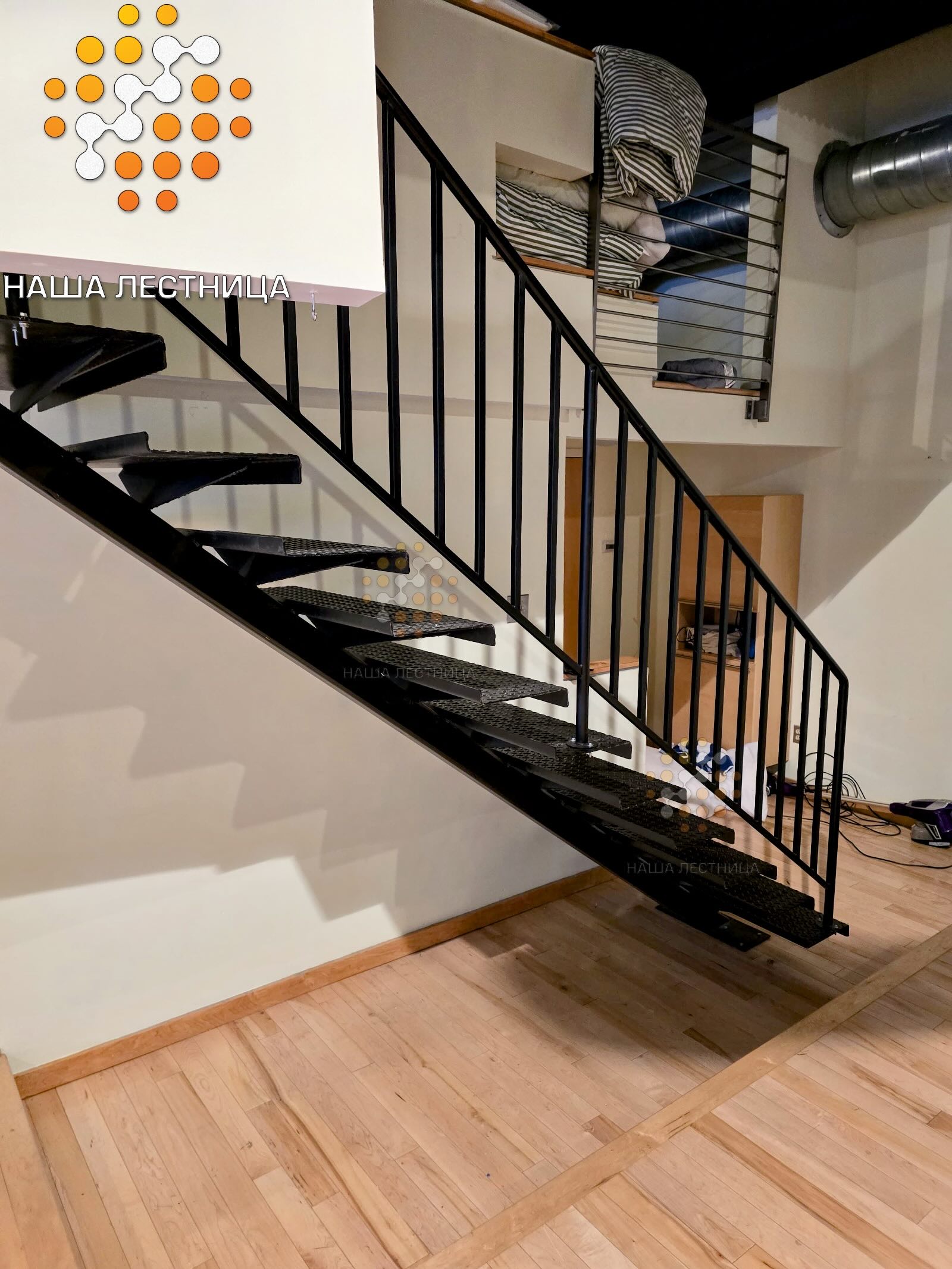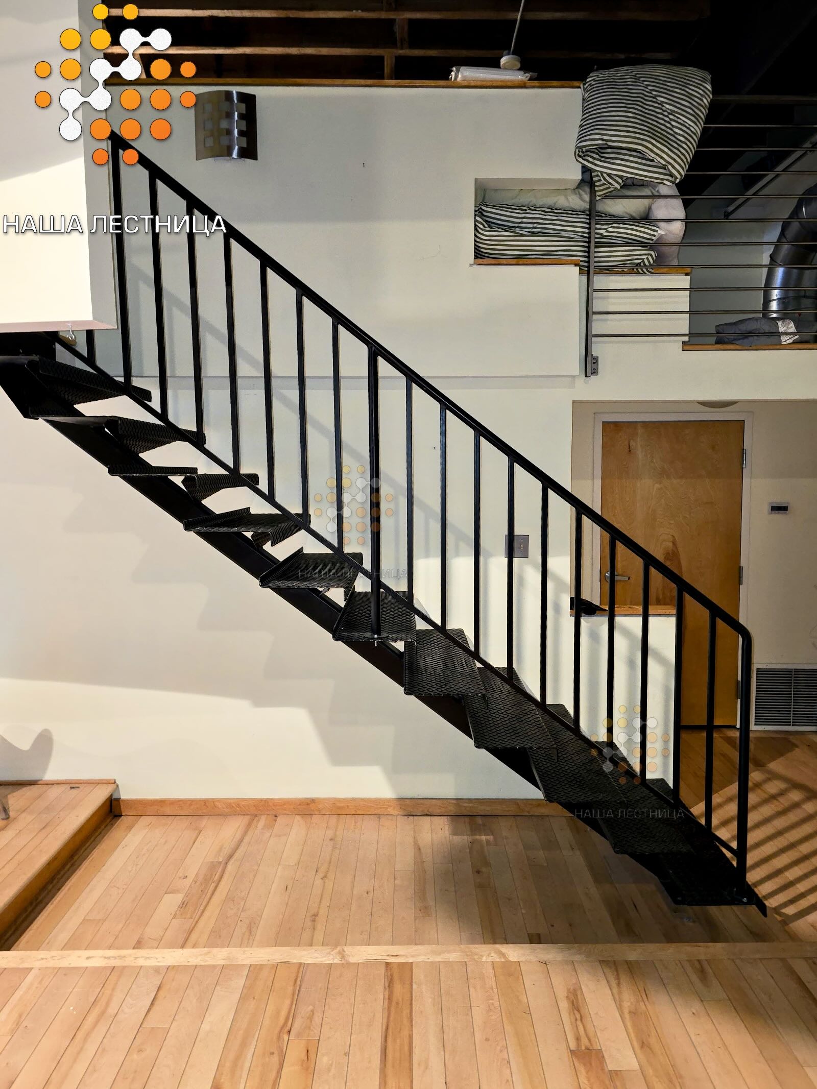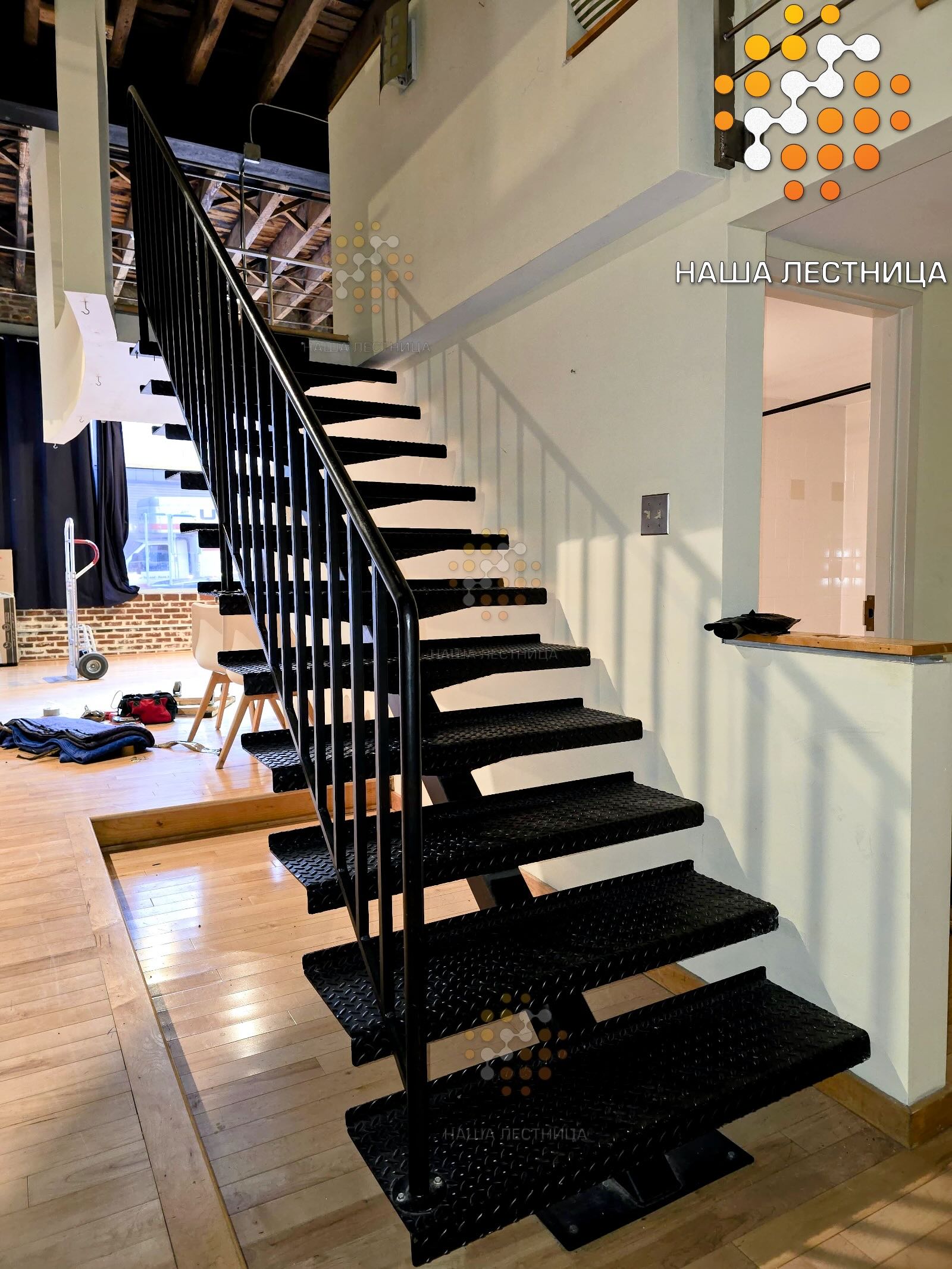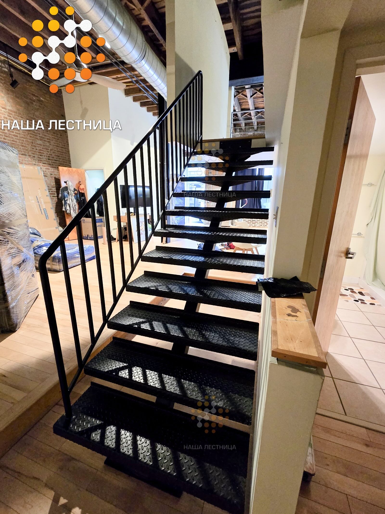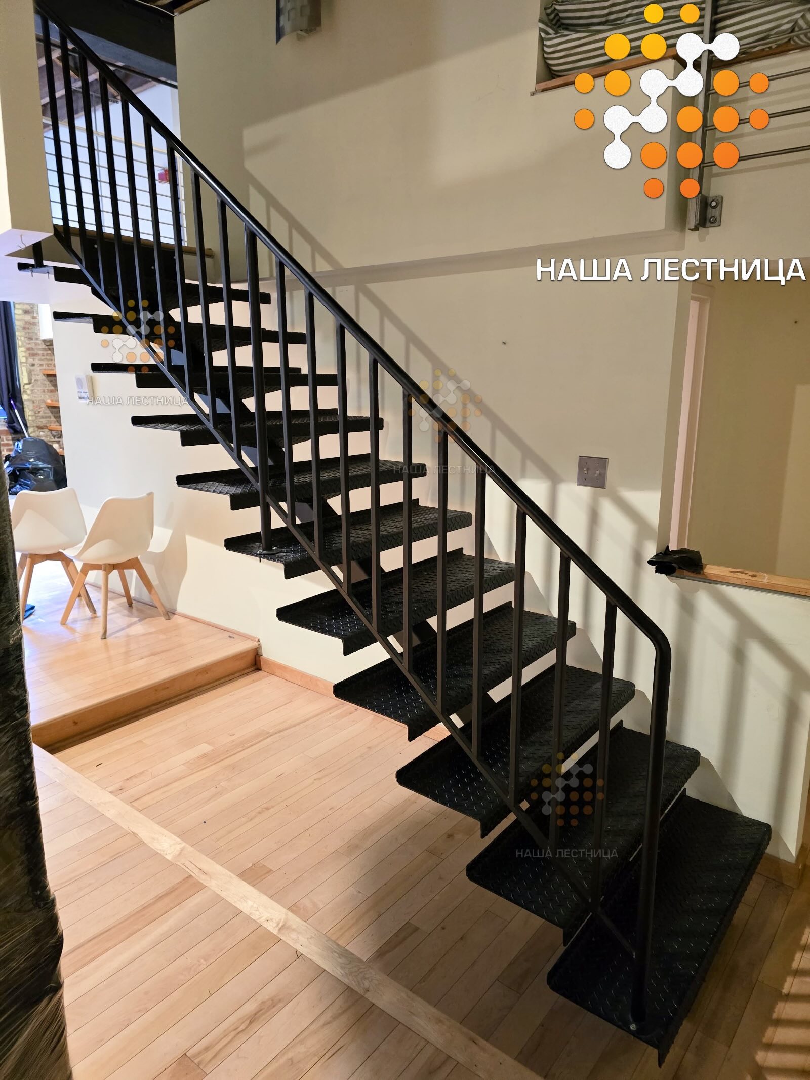 - меньше времени на подготовку перед окраской (обычно когда лестница с деревянными ступенями, мы заполировываем всё полностью, а тут строгий, классический ЛОФТ)