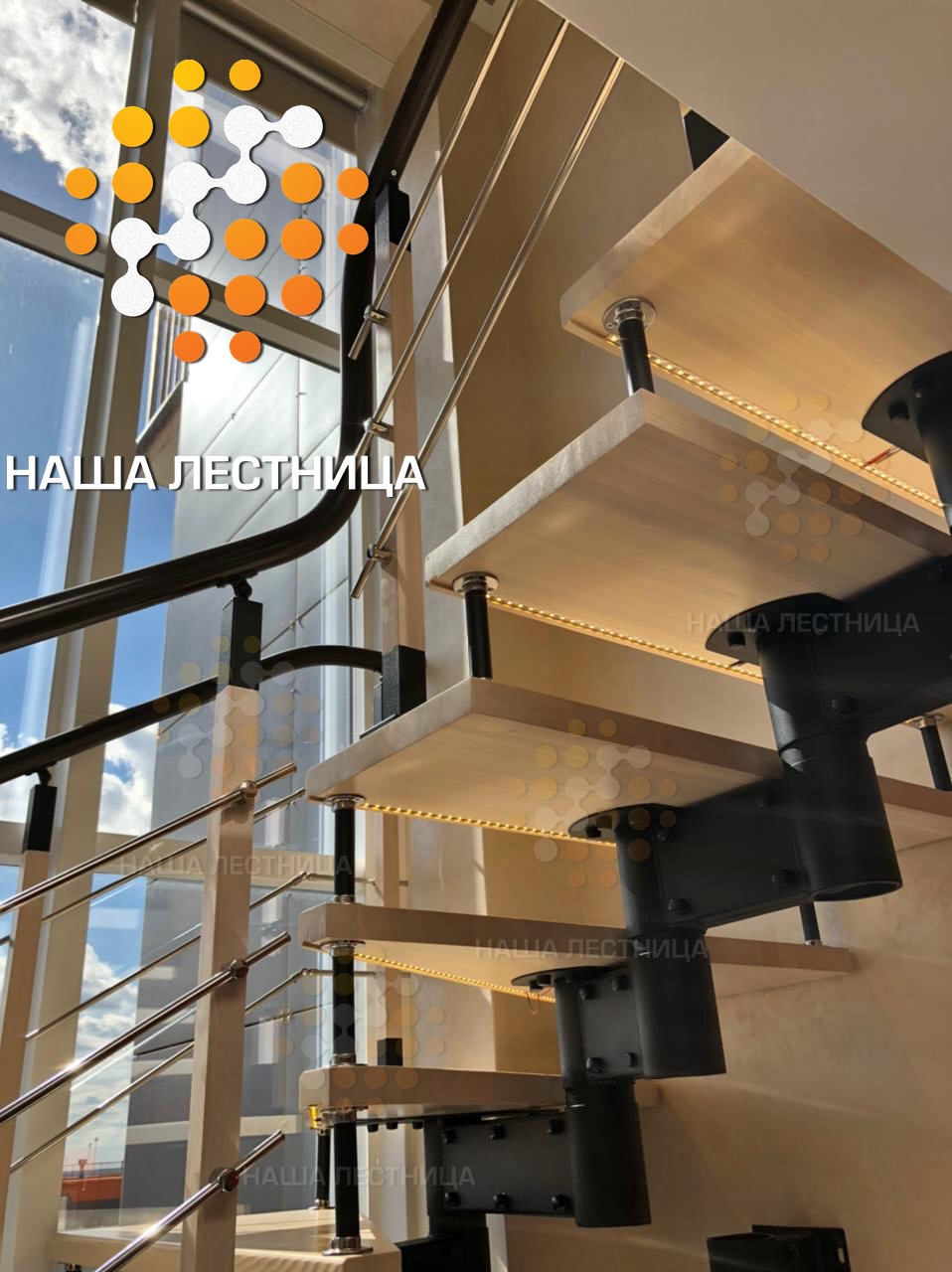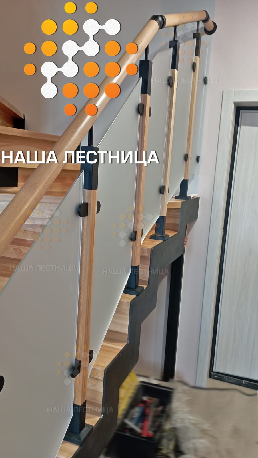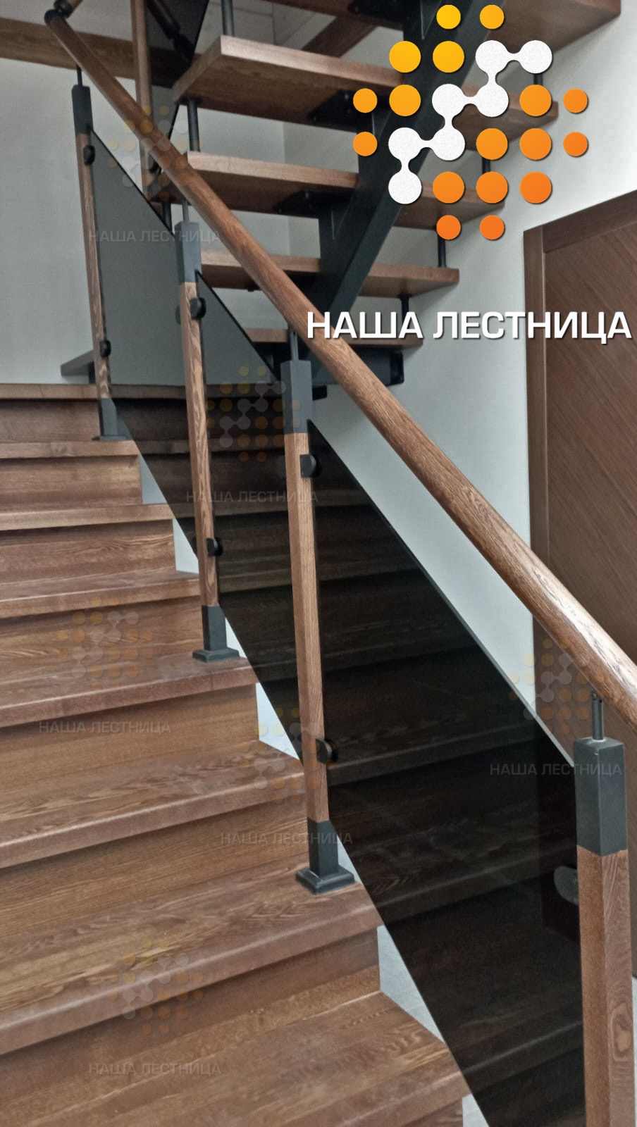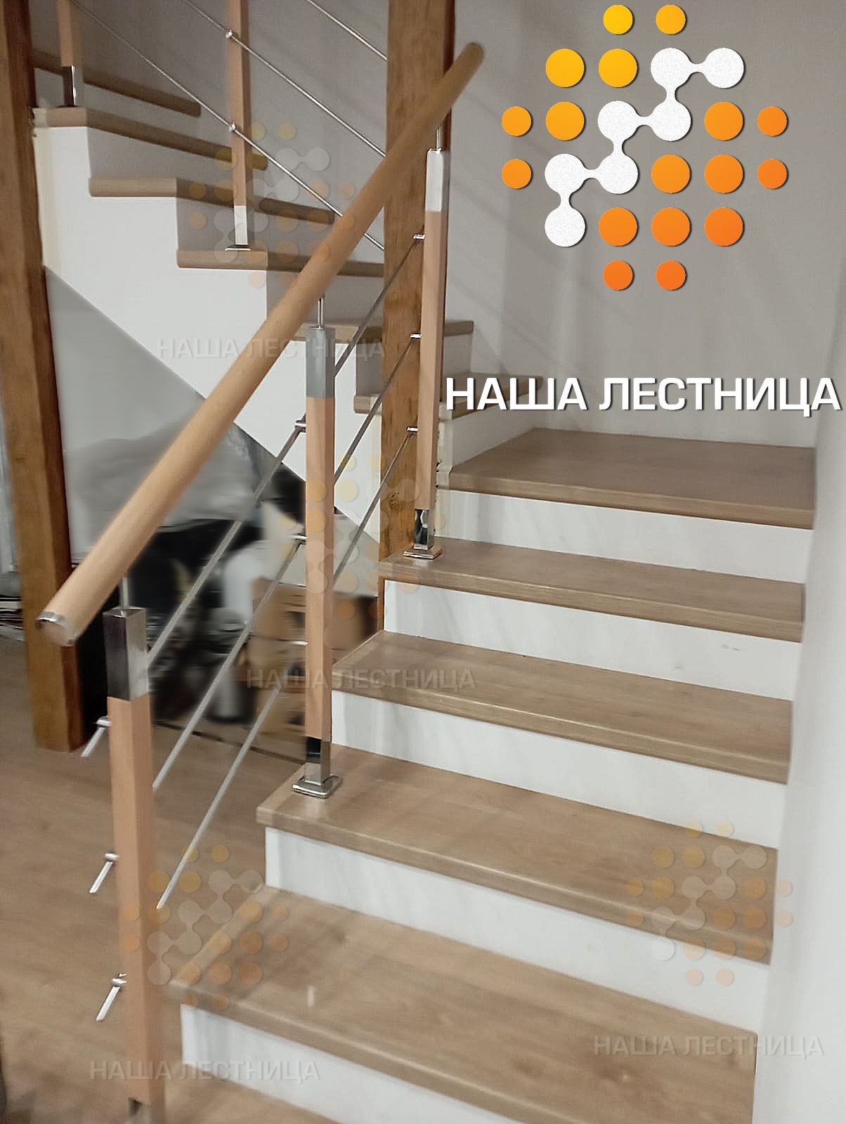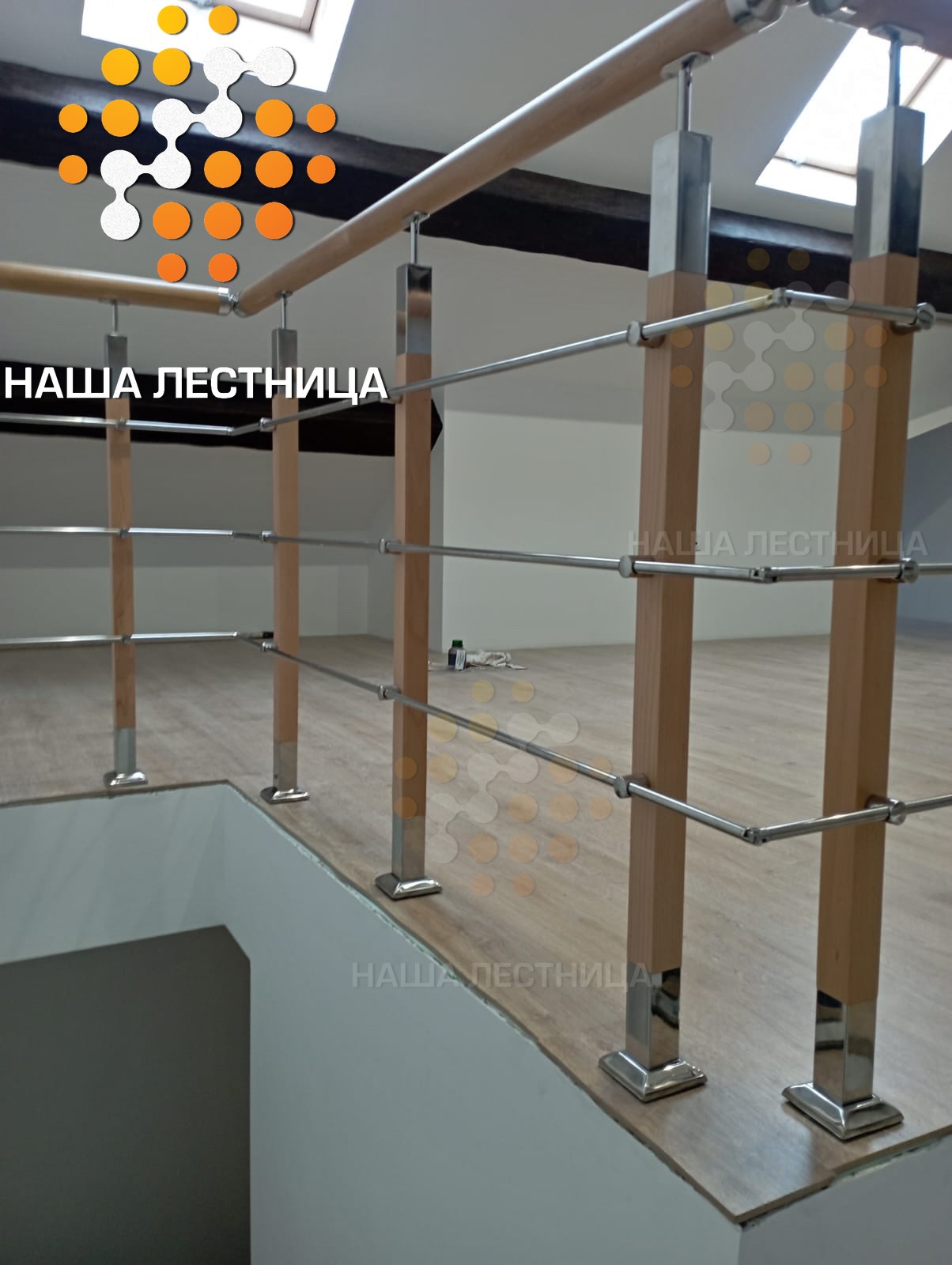 По центру балясины - дерево, такое же как на ступенях, только вот это дерево с двух сторон имеет наглухо впресованные наконечники из нержавеющих труб.